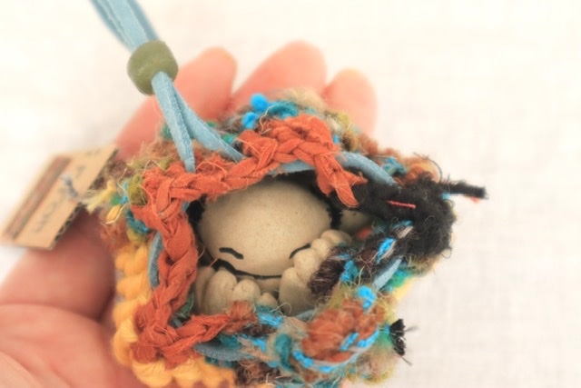 「ライオンコースター」は、ハギレやストールのフリンジを使ってできた作品です。